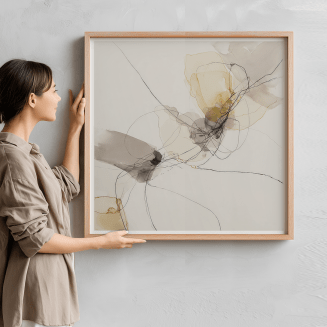 A refined modern abstract wall art print with grey, black, and warm gold tones — perfect for minimalist and contemporary interiors.
