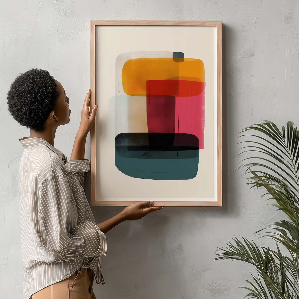 Transform your space with this modern abstract wall art, a captivating piece that combines bold organic shapes and a neutral earthy color palette for a sophisticated, gallery-worthy look. Featuring contrasting black lines, warm beige, and rich brown tones on a crisp white background, this artwork strikes the perfect balance between structure and softness, making it an eye-catching addition to any room.